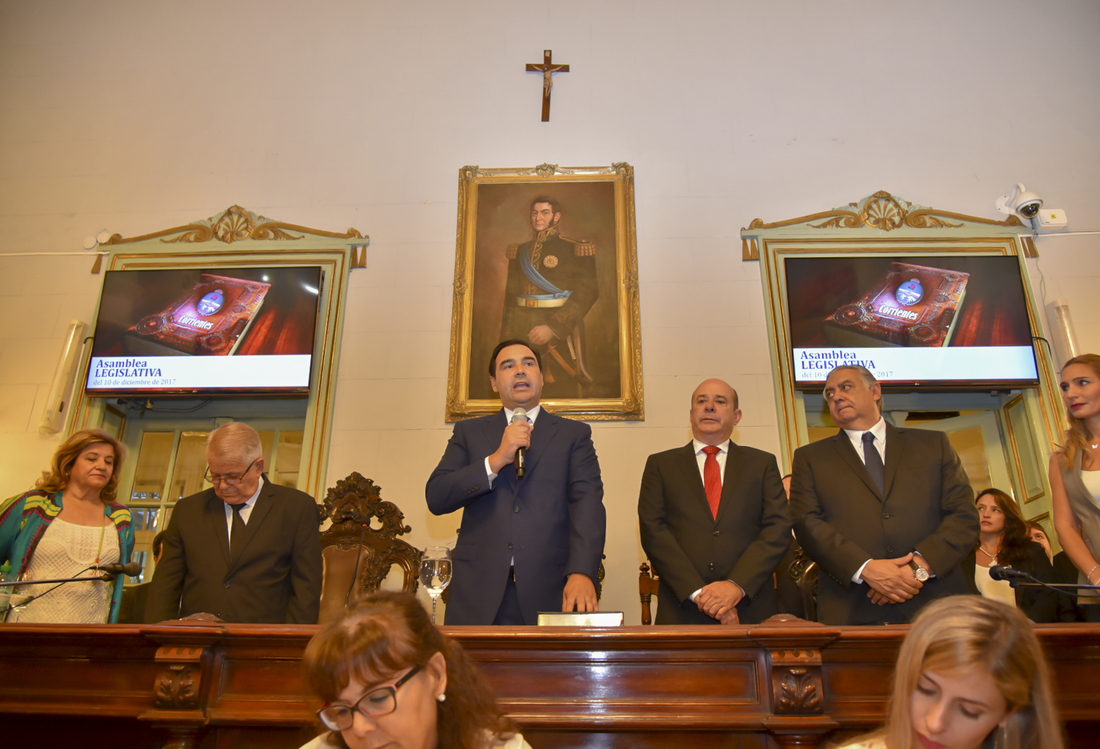 El Mandatario provincial tomará así posición en el estrado, junto a los presidentes de las cámaras de Diputados, Pedro Cassani; y de Senadores, Gustavo Canteros, siendo este último, además, el presidente de la Asamblea, quien luego de entonarse el Himno Nacional, lo invitará a emitir su mensaje para dejar así inaugurado el periodo ordinario de sesiones.
