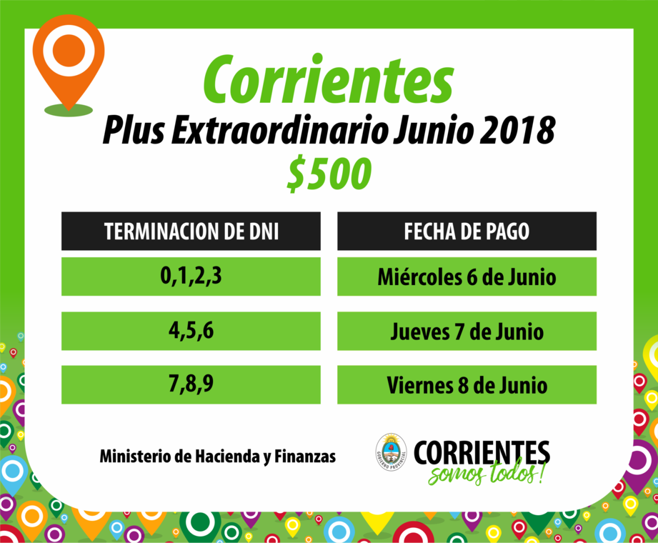 Tras el anuncio por parte del gobernador Gustavo Valdés a través de su cuenta oficial de Twitter (@gustavovaldesok), el ministro de Hacienda y Finanzas, Enrique Vaz Torres, brindó detalles acerca del cronograma de pagos del plus extraordinario no remunerativo, de 500 pesos, que comenzará este miércoles y finalizará el viernes para todos los estatales activos y jubilados. "A través del pago de este beneficio, el Gobierno provincial vuelca al mercado local unos 40 millones de pesos", afirmó el Jefe de la cartera económica provincial.